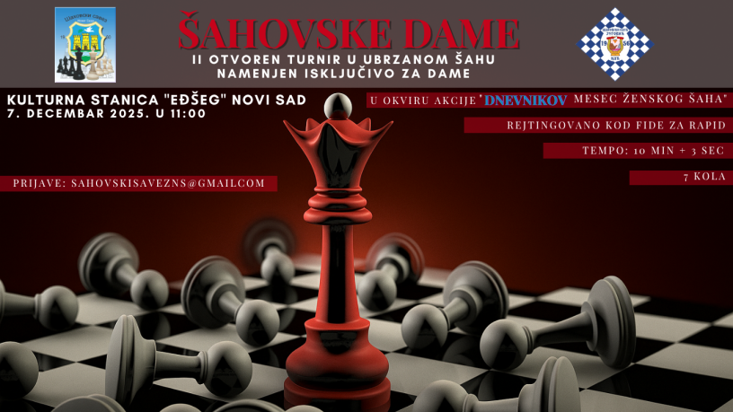 ШАХОВСКЕ ДАМЕ 2025 – II отворен турнир у убрзаном шаху намењен за даме
